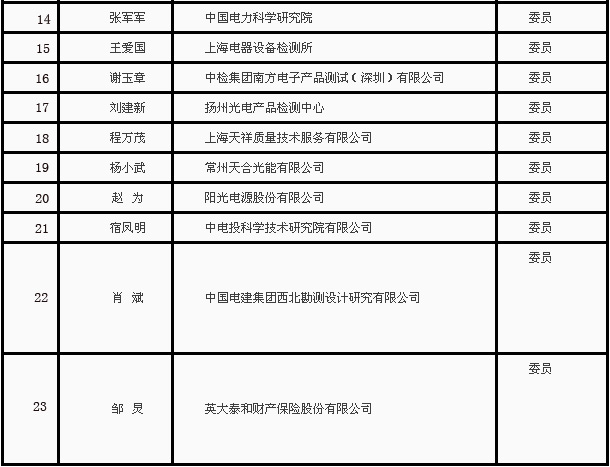 附件:光伏產(chǎn)品檢測認(rèn)證技術(shù)委員會成員名單