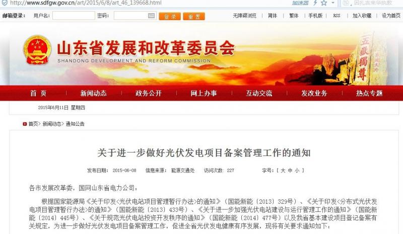 各市發(fā)展改革委,國網(wǎng)山東省電力公司: 根據(jù)國家能源局《關(guān)于印發(fā)<光伏電站項目管理暫行辦法>的通知》(國能新能〔2013〕329號)、《關(guān)于印發(fā)<分布式光伏發(fā)電項目管理暫行辦法>的通知》(國能新能〔2013〕433號)、《關(guān)于進一步加強光伏電站建設(shè)與運行管理工作的通知》(國能新能〔2