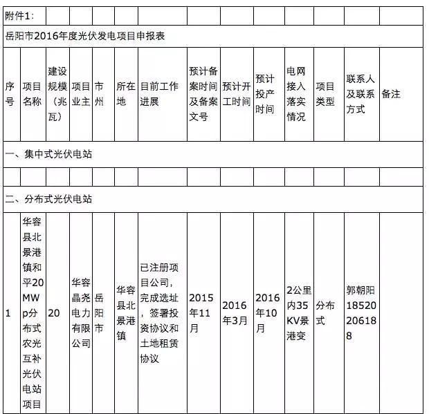 附件:岳陽(yáng)市2016年度光伏發(fā)電項(xiàng)目申報(bào)表
