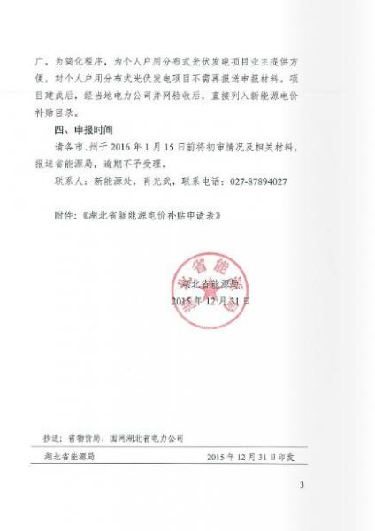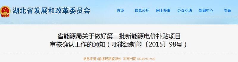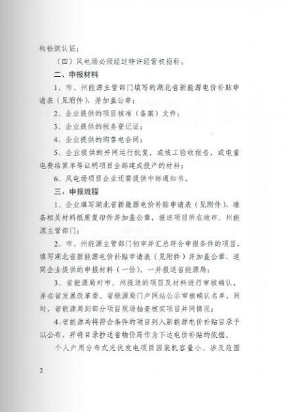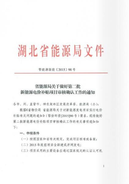 湖北省能源局關(guān)于做好第二批新能源電價(jià)補(bǔ)貼項(xiàng)目審核確認(rèn)工作的通知