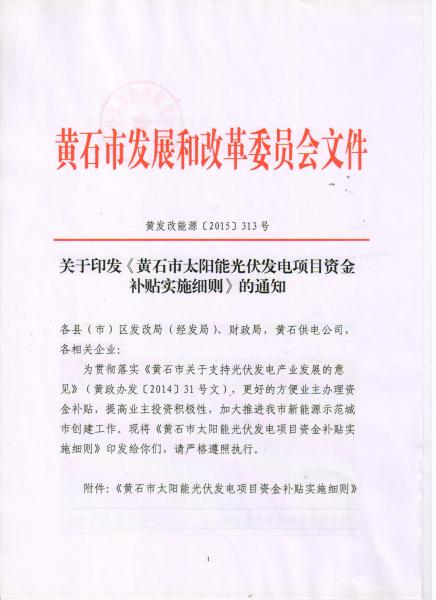 。ǘS石經濟技術開發(fā)區(qū)、大冶市和陽新縣的光伏發(fā)電項目補貼,分別由所在地財政部門按補貼標準全額補貼。