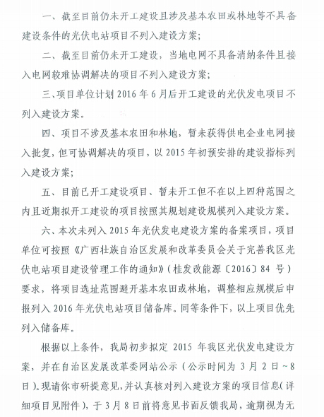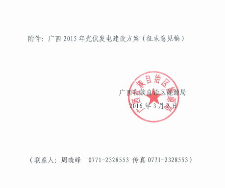 廣西壯族自治區(qū)能源局關(guān)于征求2015年光伏發(fā)電建設(shè)方案的通知
