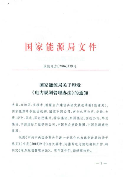 國家能源局關于印發(fā)《電力規(guī)劃管理辦法》的通知