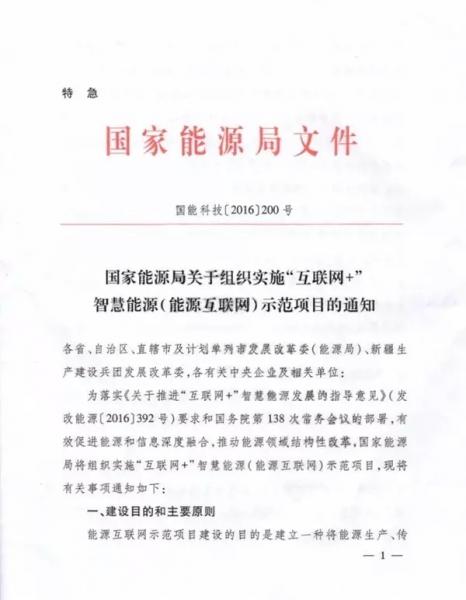 原標(biāo)題:國(guó)家能源局關(guān)于組織實(shí)施“互聯(lián)網(wǎng)+”智慧能源示范項(xiàng)目的通知