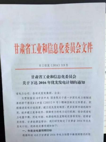 原標(biāo)題:甘肅省工信委下達(dá)2016年優(yōu)先發(fā)電計(jì)劃