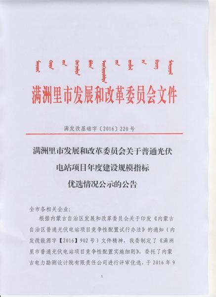 內(nèi)蒙古滿洲里發(fā)改委關(guān)于普通光伏電站項(xiàng)目