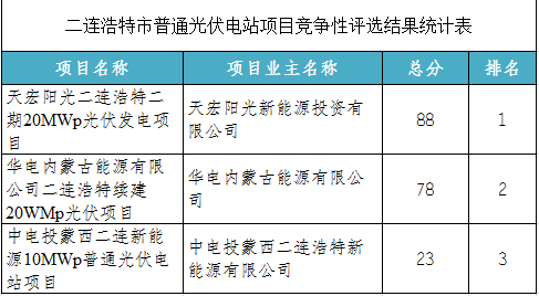 附件:二連浩特市普通光伏電站項目競爭性評選結果統(tǒng)計表