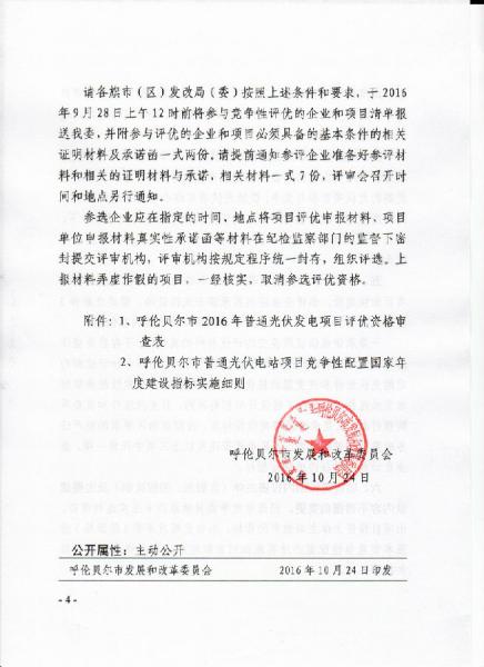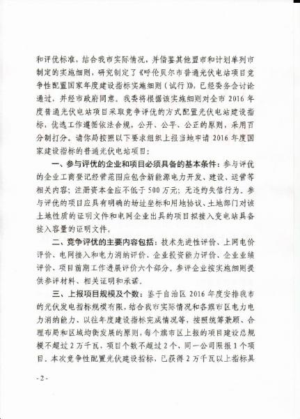 原標(biāo)題:呼倫貝爾市發(fā)展和改革委員會(huì)關(guān)于上報(bào)普通光伏電站項(xiàng)目參與競(jìng)爭(zhēng)評(píng)優(yōu)配置光伏電站建設(shè)指標(biāo)的通知