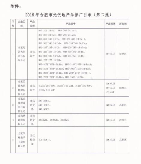原標(biāo)題:關(guān)于印發(fā)2016年合肥市光伏地產(chǎn)品推廣目錄(第二批)的通知