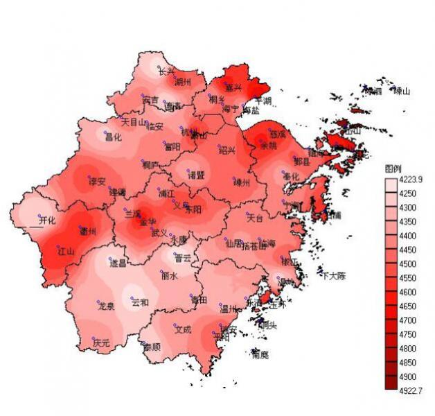 圖1浙江省多年平均年總輻射分布圖(兆焦/平方米)