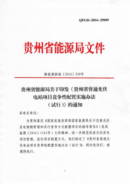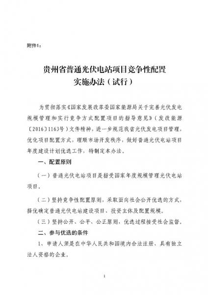 原標(biāo)題:貴州省能源局關(guān)于印發(fā)《貴州省普通光伏電站項目競爭性配置實施辦法(試行)》的通知