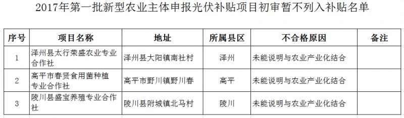 附件1:2017年第一批農(nóng)業(yè)經(jīng)營(yíng)主體申報(bào)光伏補(bǔ)貼項(xiàng)目初審暫不列入補(bǔ)貼名單