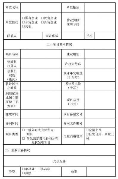 (一)《陜西省分布式光伏發(fā)電項(xiàng)目財(cái)政資金申報(bào)表》(附件1);