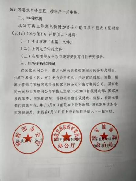 (四)已納入補(bǔ)助目錄的項(xiàng)目,當(dāng)“項(xiàng)目名稱”、“項(xiàng)目公司”、“項(xiàng)目容量”、“線路長度”等發(fā)生變化或與現(xiàn)實(shí)不符時(shí),請按照《財(cái)政部 國家發(fā)展改革委 國家能源局關(guān)于印發(fā)<可再生能源電價(jià)附加補(bǔ)助資金管理暫行辦法>的通知》(財(cái)建﹝2012﹞102號(hào))、《通知》等要求申請變更,按程序一并申報(bào)。
