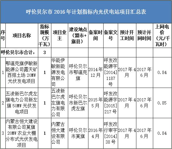呼倫貝爾市2016年度計(jì)劃指標(biāo)內(nèi)光伏電站項(xiàng)目匯總表