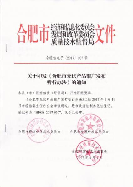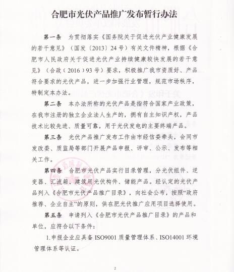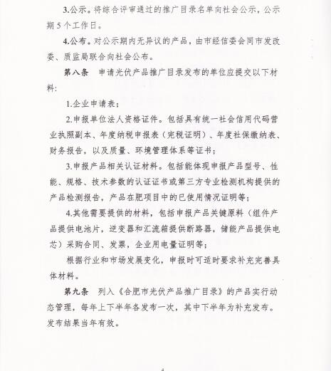 安徽合肥市光伏產(chǎn)品推廣發(fā)布暫行辦法