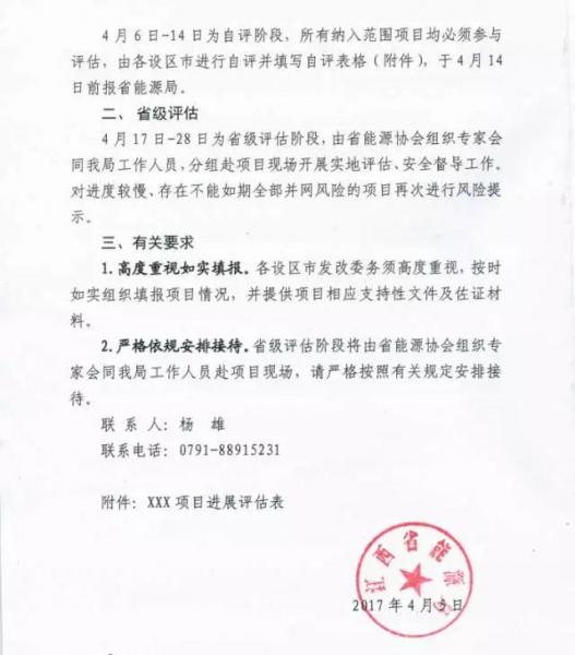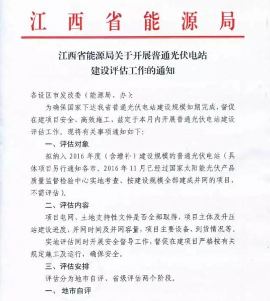 4月5日,江西省能源局下發(fā)通知稱開展普通光伏電站建設(shè)評估工作,對于納入2016年度建設(shè)規(guī)模的普通光伏電站項目從電網(wǎng)、土地、建設(shè)進(jìn)度以及并網(wǎng)容量、時間等方面進(jìn)行實地嚴(yán)格評估,以確保項目按時合規(guī)完成。