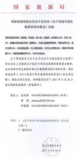 關(guān)于促進(jìn)可再生能源供熱的意見(jiàn)(征求意見(jiàn)稿)