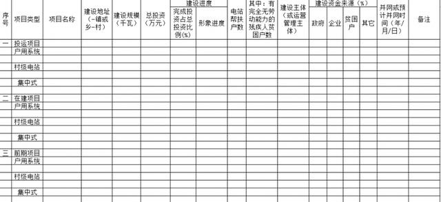 附件:----縣(市/區(qū))“十三五”光伏扶貧項(xiàng)目調(diào)查表