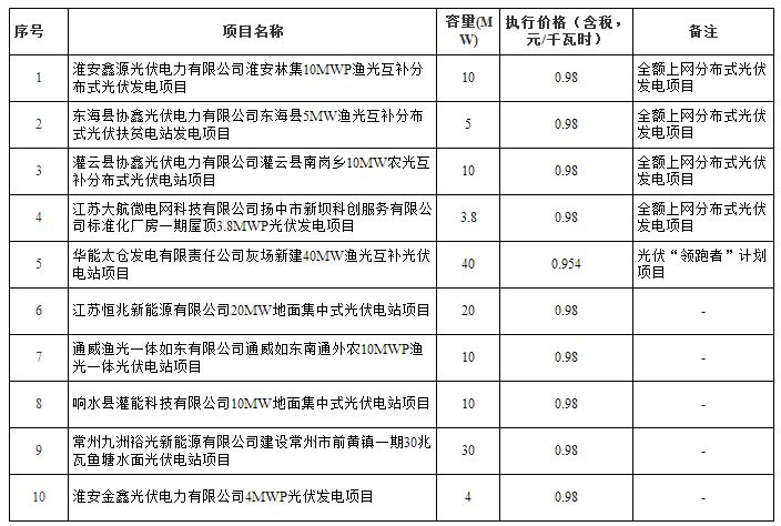 根據(jù)國家光伏發(fā)電價格政策,現(xiàn)將已并網(wǎng)的淮安鑫源等光伏發(fā)電項目上網(wǎng)電價予以公布(詳見附件),接網(wǎng)補貼為每千瓦時0.01元。
