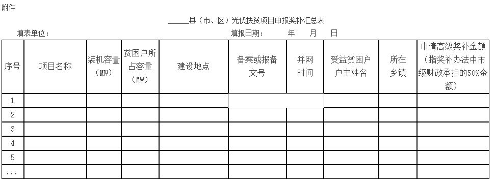 3.《光伏扶貧項目申報獎補匯總表》以本文件所附表格為準(zhǔn)。