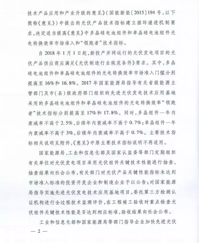 日前,國家能源局、工信部以及國家認(rèn)監(jiān)委聯(lián)合下發(fā)《關(guān)于提高主要光伏產(chǎn)品技術(shù)指標(biāo)并加強(qiáng)監(jiān)管工作的通知》,規(guī)定了最新的光伏組件的市場準(zhǔn)入效率以及領(lǐng)跑者技術(shù)指標(biāo)。