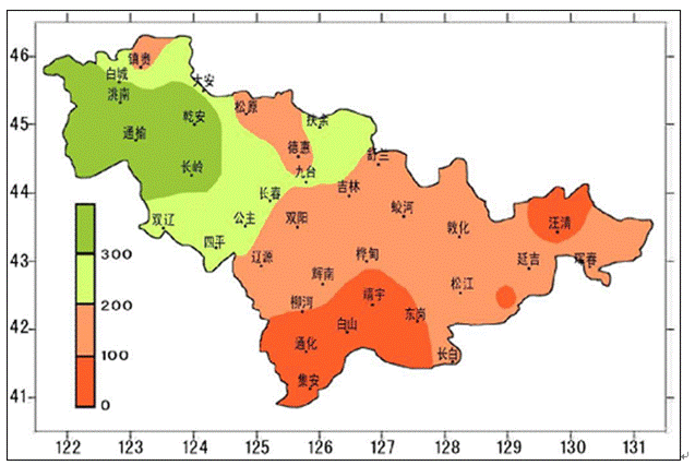 圖1.1-2吉林省70米高度風功率密度分布圖