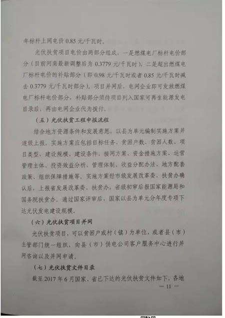 河南省發(fā)展和改革委員會河南省扶貧開發(fā)辦公室關于關于印發(fā)《2017年光伏扶貧工作推進方案》的通知豫發(fā)改能源〔2017〕789號 2017年河南省新增光伏地面電站指標有望全部花落扶貧,河南已上報國家29個縣!