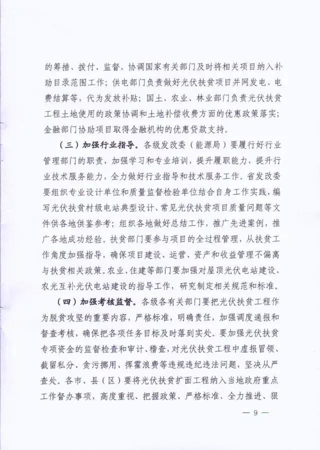 近日,江西省發(fā)改委印發(fā)《關(guān)于實施光伏扶貧擴面工程的指導(dǎo)意見(征求建議稿)》意見的函,對光伏扶貧做出了多項優(yōu)先支持政策:1、光伏扶貧項目優(yōu)先列入全省光伏建設(shè)計劃;2、光伏扶貧項目優(yōu)先享受財政度電補貼政策;3、光伏扶貧項目優(yōu)先享受電網(wǎng)并網(wǎng)服務(wù);4、光伏扶貧項目優(yōu)先享受金融優(yōu)惠支持;5、光伏扶貧項目享受用地優(yōu)惠政策!
