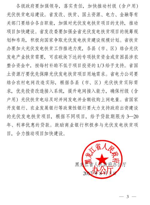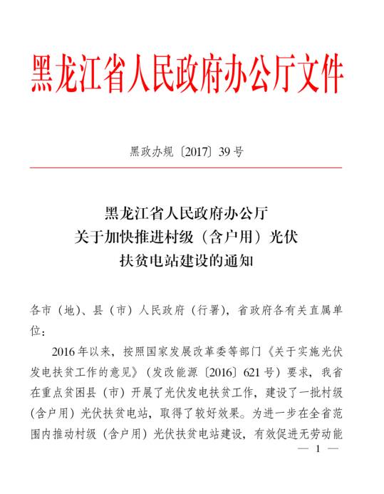 黑龍江省印發(fā)村級(戶用)光伏扶貧建設(shè)的通知