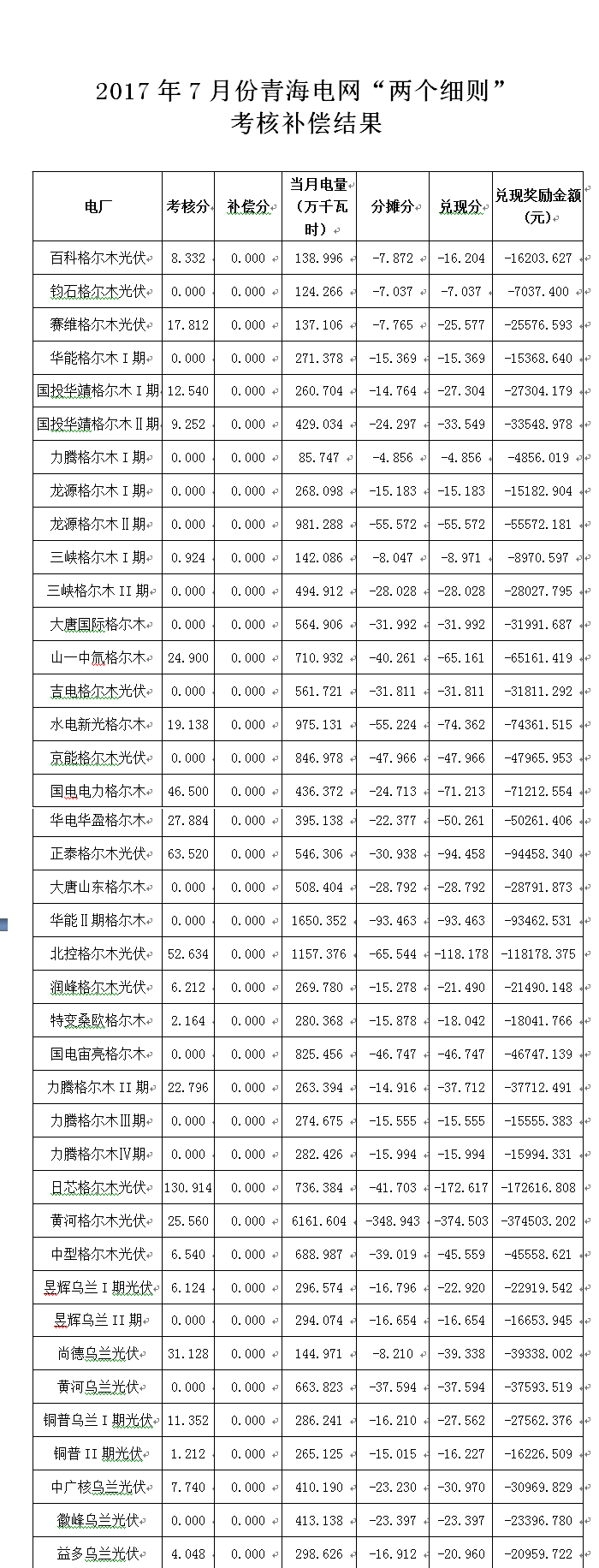 根據(jù)《關(guān)于印發(fā)<西北區(qū)域發(fā)電廠并網(wǎng)運行管理實施細則>及<西北區(qū)域并網(wǎng)發(fā)電廠輔助服務(wù)管理實施細則>的通知》(西北監(jiān)能市場〔2015〕28號)規(guī)定,2017年7月份寧夏電網(wǎng)發(fā)電廠并網(wǎng)考核和輔助服務(wù)補償結(jié)果復核工作已完成,現(xiàn)予公布,請依據(jù)附件結(jié)算。