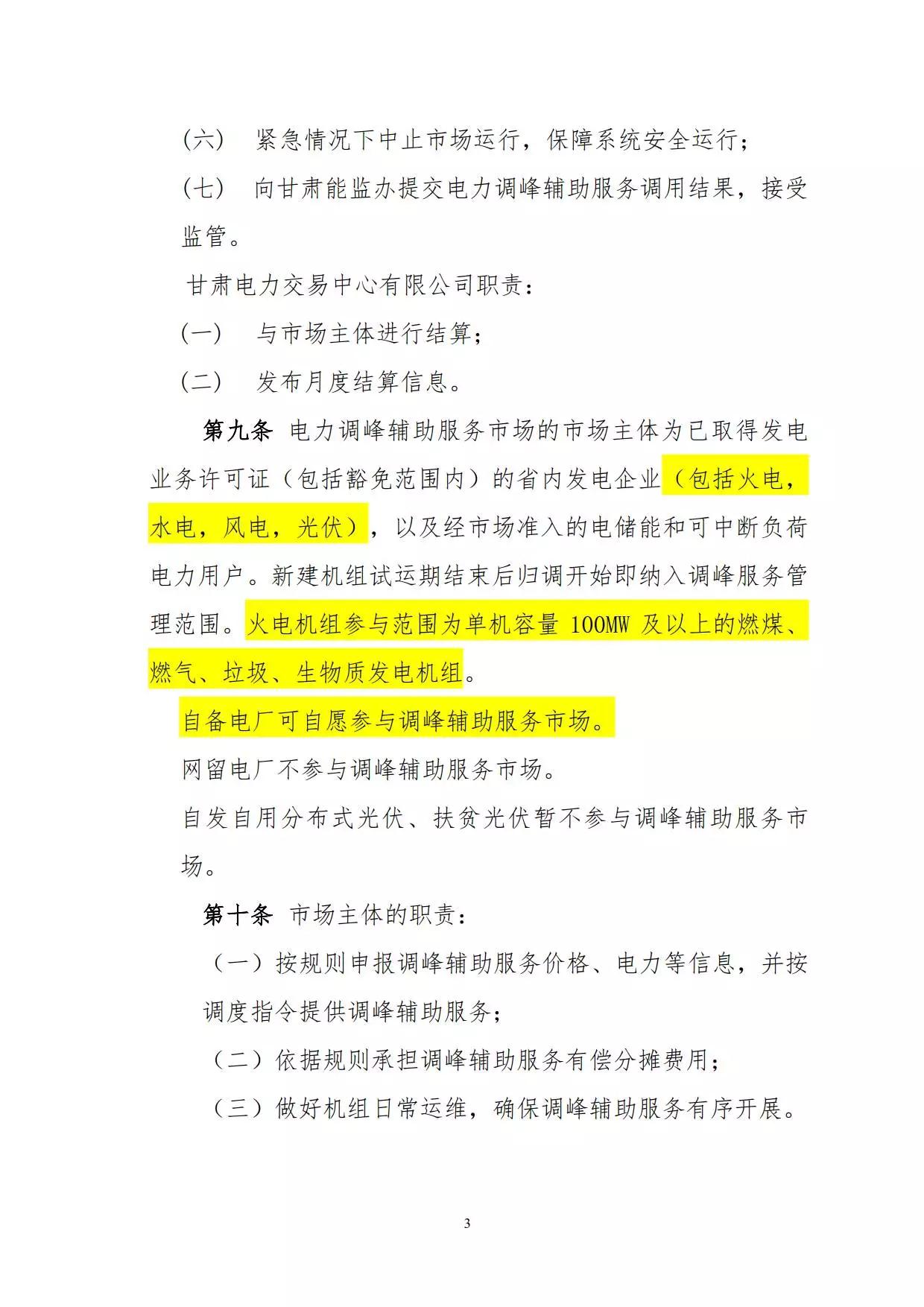 9月12日,甘肅能監(jiān)辦發(fā)布了《甘肅電力調(diào)峰輔助服務(wù)市場(chǎng)運(yùn)營(yíng)規(guī)則(試行)》的征求意見(jiàn)稿。隨著甘肅省電力輔助服務(wù)市場(chǎng)運(yùn)營(yíng)規(guī)則的征求意見(jiàn),甘肅電力輔助服務(wù)市場(chǎng)也準(zhǔn)備開(kāi)展了,電改在甘肅省又邁進(jìn)了一步! ≈攸c(diǎn)如下: 1、電力調(diào)峰輔助服務(wù)市場(chǎng)的市場(chǎng)主體為已取得發(fā)電業(yè)務(wù)許可證(包括豁免范圍內(nèi))的省內(nèi)發(fā)