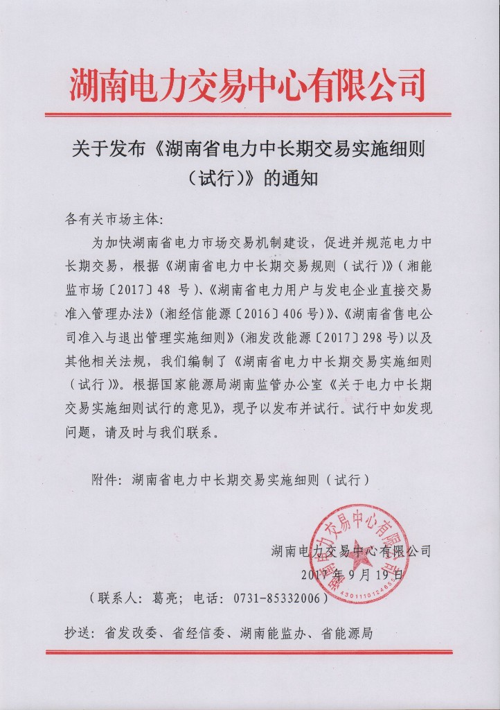 湖南省電力中長期交易實(shí)施細(xì)則(試行)