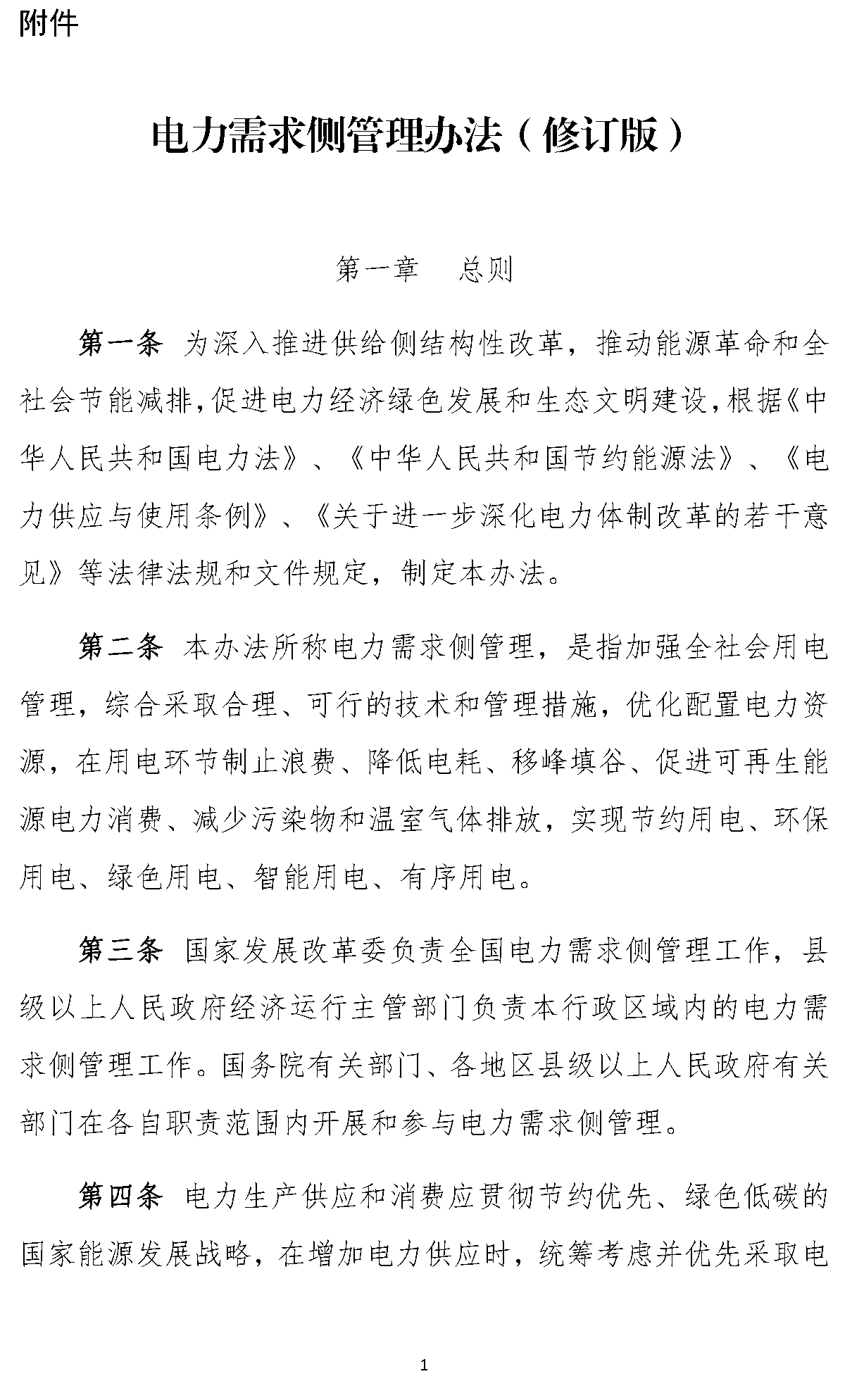 結(jié)合新形勢和新任務(wù),我們對現(xiàn)行的《電力需求側(cè)管理辦法》進行了修訂。在執(zhí)行過程中,各有關(guān)單位要樹立“電力的需求側(cè)即是用戶的供給側(cè)”的理念,切實發(fā)揮好需求側(cè)管理的重要作用推進供給側(cè)結(jié)構(gòu)性改革。2011年1月1日發(fā)布的《電力需求側(cè)管理辦法》同時廢止。