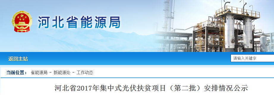 根據(jù)《關(guān)于開(kāi)展2017年集中式光伏扶貧項(xiàng)目申報(bào)工作的通知》(冀發(fā)改能源〔2017〕1025號(hào))要求,經(jīng)各市申報(bào)、電網(wǎng)公司確認(rèn)、專家審查,現(xiàn)對(duì)全省2017年集中式光伏扶貧項(xiàng)目(第二批)安排有關(guān)情況,予以公示。