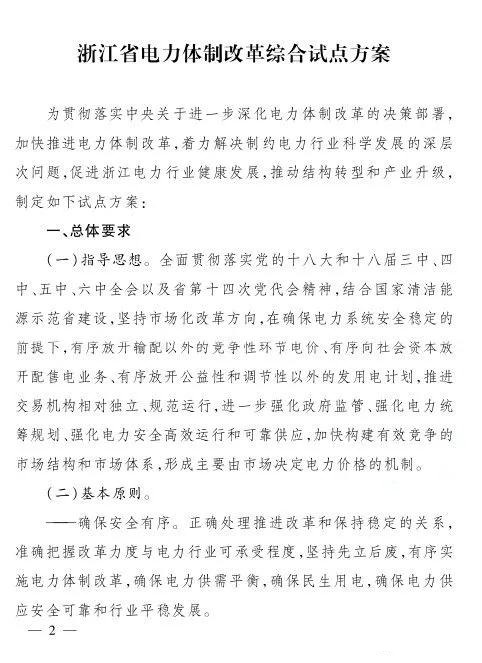 浙江省電力體制改革綜合試點(diǎn)方案