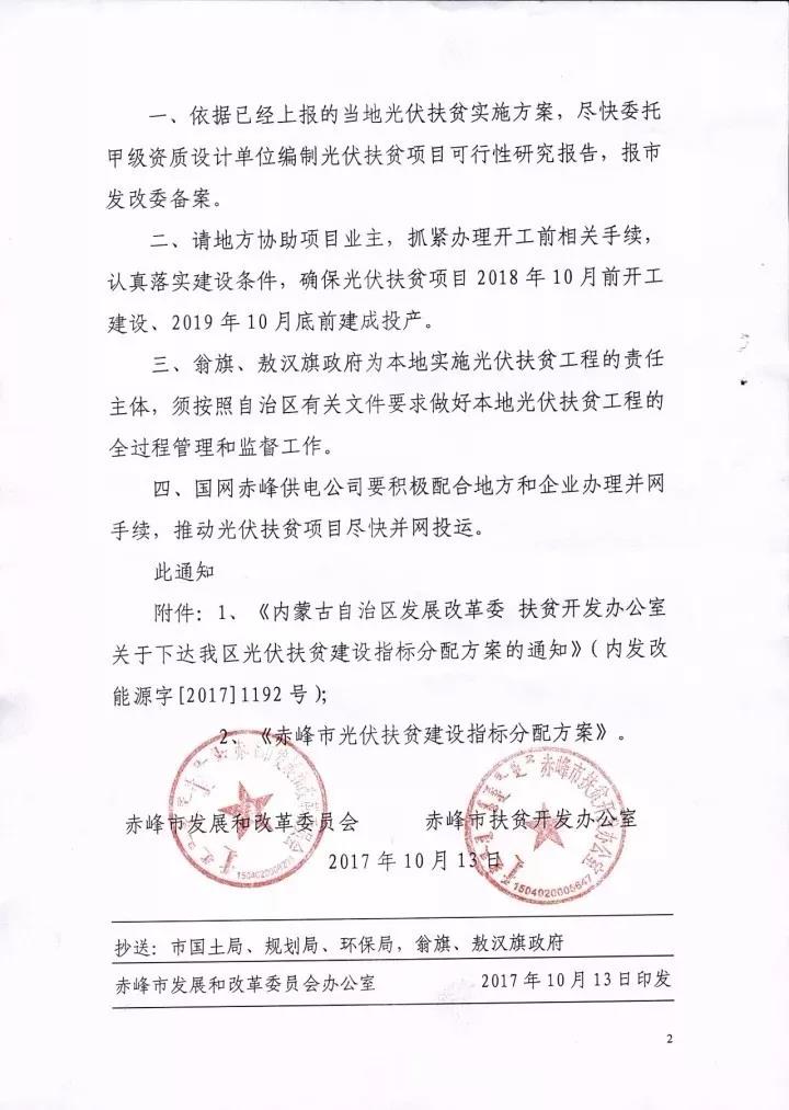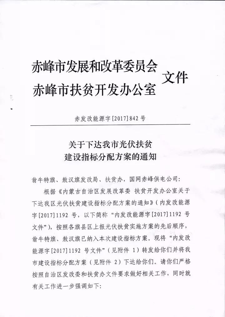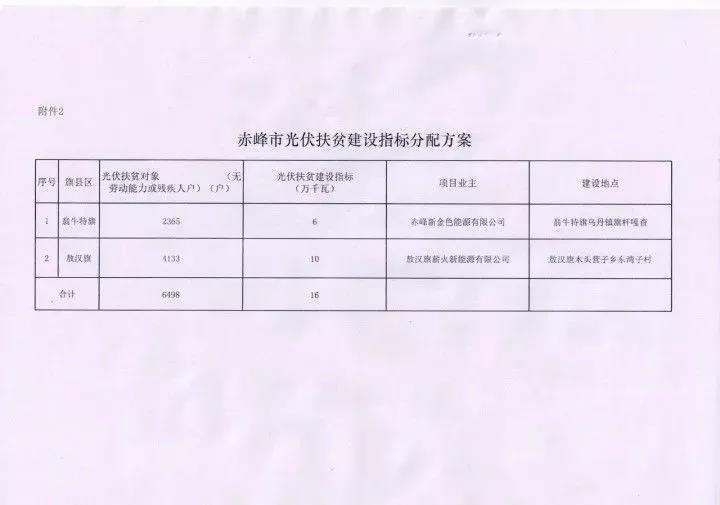 10月13日,赤峰市發(fā)改委、扶貧辦聯(lián)合發(fā)文,下達(dá)赤峰市2017年16萬(wàn)千瓦光伏扶貧建設(shè)指標(biāo)分配方案,通威新能源有限公司獲得敖漢旗100MW光伏扶貧指標(biāo),另外60MW光伏扶貧指標(biāo)被赤峰新金色能源有限公司獲得。