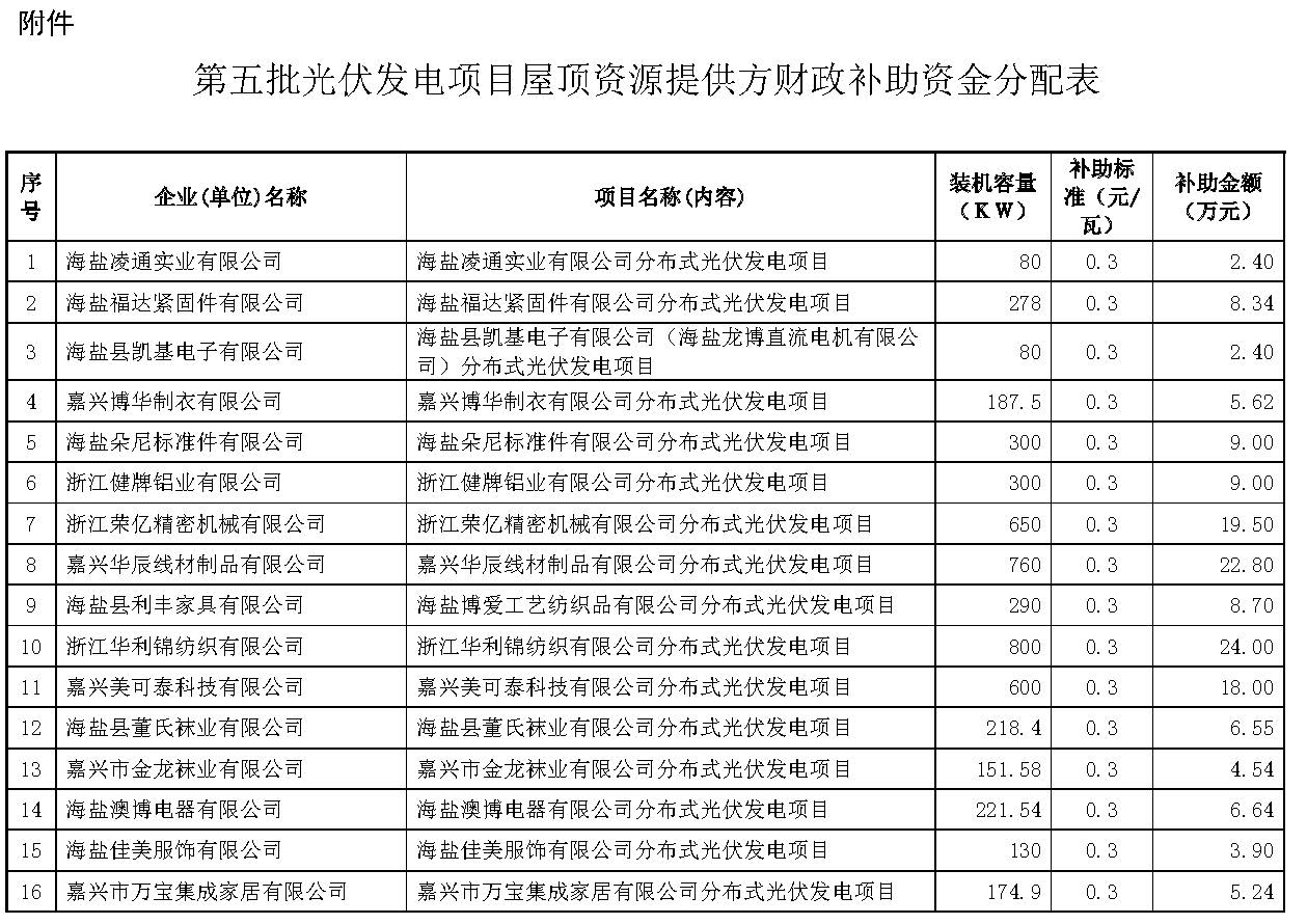 海鹽縣財(cái)政局 海鹽縣經(jīng)濟(jì)和信息化局關(guān)于撥付第五批光伏發(fā)電項(xiàng)目屋頂資源提供方財(cái)政補(bǔ)助資金的通知