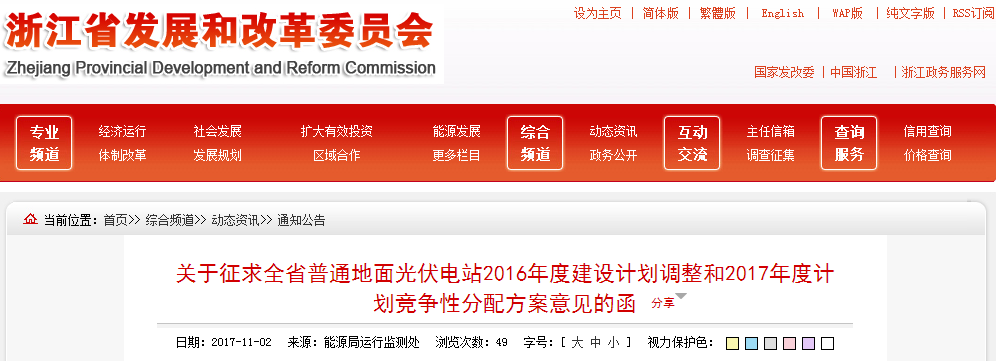 各設(shè)區(qū)市發(fā)改委、省扶貧辦、浙江能源監(jiān)管辦、省電力公司: 根據(jù)《國家發(fā)展改革委 國家能源局關(guān)于完善光伏發(fā)電規(guī)模管理和實(shí)行競爭方式配置項(xiàng)目的指導(dǎo)意見》(發(fā)改能源〔2016〕1163號)等文件要求,2016年我省通過競爭性分配下達(dá)了2016年普通地面光伏電站建設(shè)計劃,后又增補(bǔ)了一批項(xiàng)目(根據(jù)國能新能[2017]31號