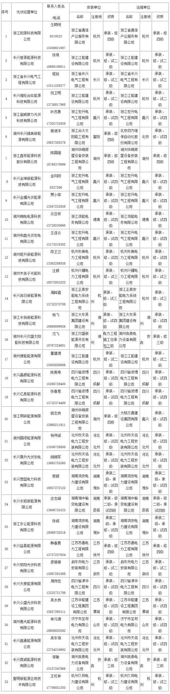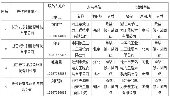 長(zhǎng)興縣家庭屋頂光伏規(guī)范企業(yè)名單(第一批)