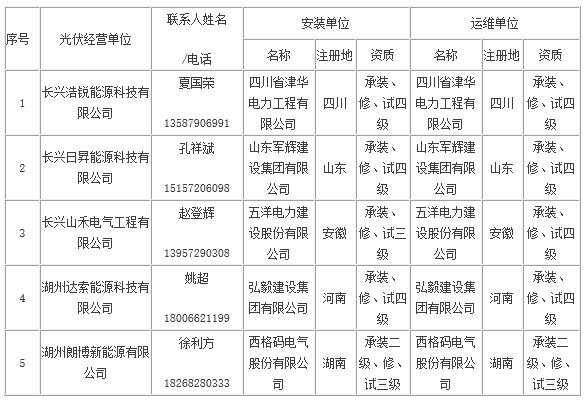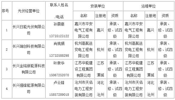 長(zhǎng)興縣家庭屋頂光伏規(guī)范企業(yè)名單(第五批)
