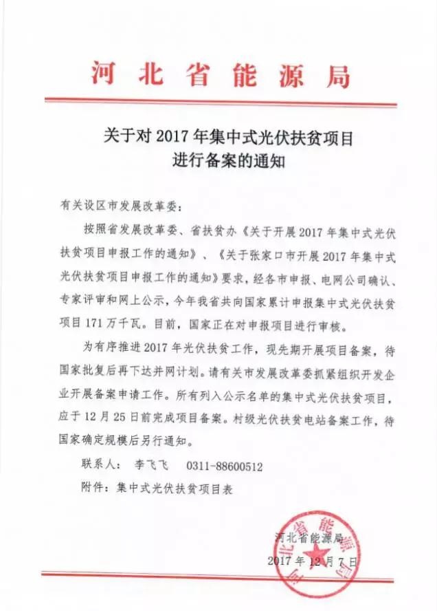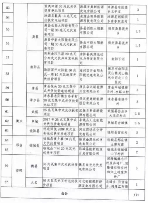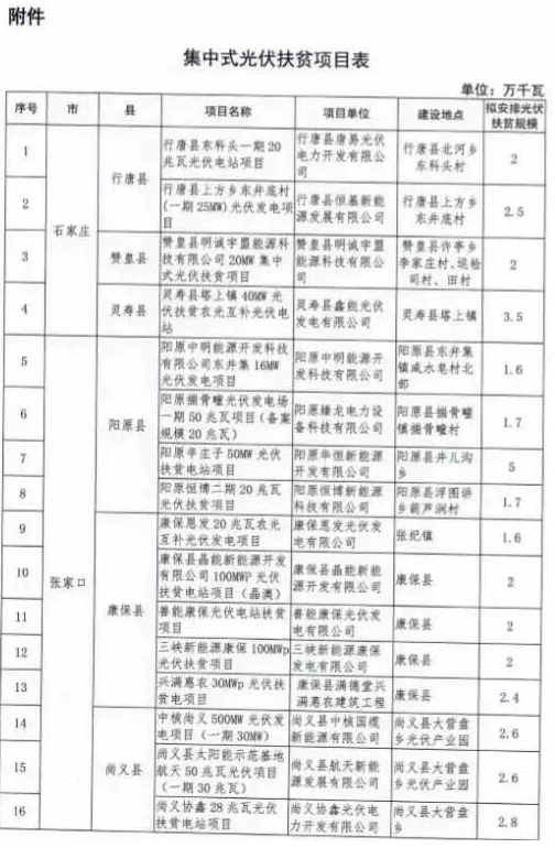 河北對(duì)2017年171萬千瓦集中式光伏扶貧項(xiàng)目進(jìn)行備案
