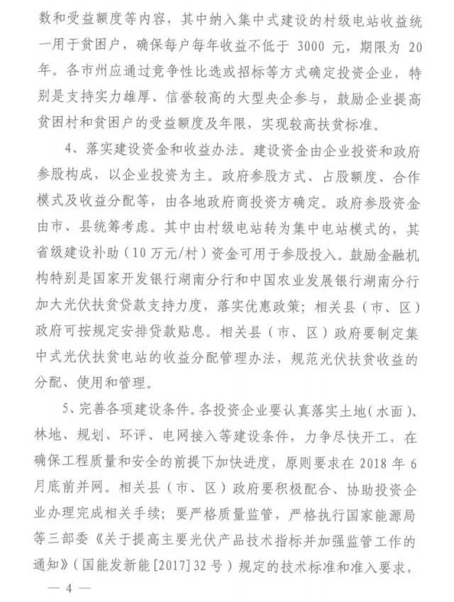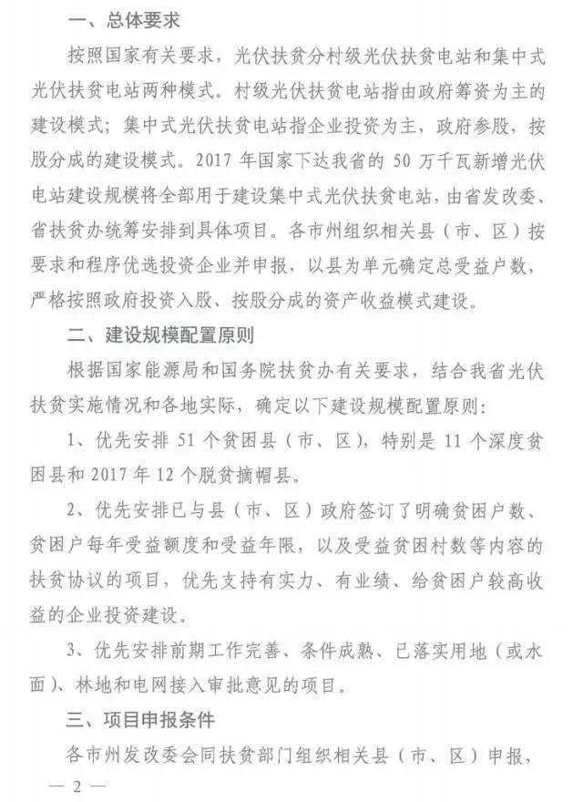 12月8日,湖南省發(fā)布《關(guān)于開展2017年集中式光伏扶貧項(xiàng)目申報(bào)工作的通知》。通知指出,2017年湖南省50萬千瓦新增光伏電站指標(biāo)將全部用于光伏扶貧。優(yōu)先安排51個(gè)貧困縣(市、區(qū)),重點(diǎn)是11個(gè)深度貧困縣和12個(gè)2017年貧困摘帽縣。每個(gè)電站申報(bào)的建設(shè)規(guī)模原則上不超過2萬千瓦,以縣為單位確定總受益戶數(shù),總受益戶數(shù)與電站總建設(shè)規(guī)模的配比關(guān)系為每戶對(duì)應(yīng)30千瓦。并于12月25日前聯(lián)合上報(bào)湖南省發(fā)改委和扶貧辦。