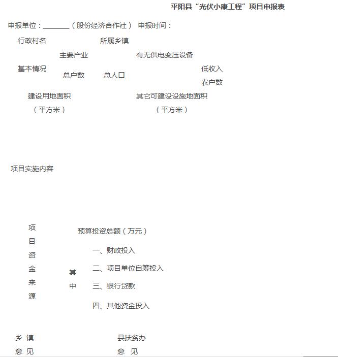1、平陽縣“光伏小康工程”項(xiàng)目申報(bào)表
