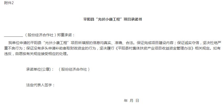 2、平陽縣“光伏小康工程”項(xiàng)目承諾書