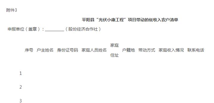 3、平陽縣“光伏小康工程”項(xiàng)目帶動的低收入農(nóng)戶清單