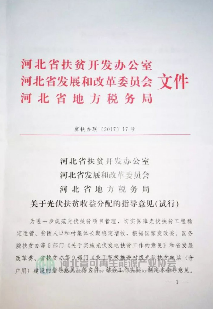 河北印發(fā)《關(guān)于光伏扶貧收益分配的指導(dǎo)意見(jiàn)》