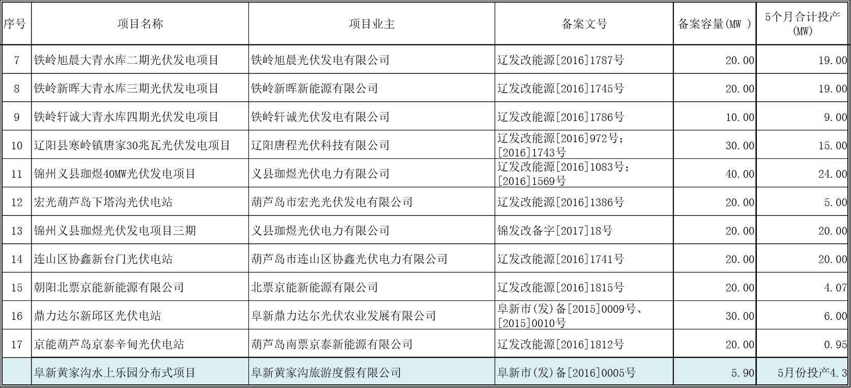 3、表中最后特別補(bǔ)充公示1項(xiàng)非自然人全額上網(wǎng)分布式項(xiàng)目,于5月份實(shí)際并網(wǎng)4.3MW,擬納入2016年建設(shè)規(guī)模。請(qǐng)其它于2017年并網(wǎng)投產(chǎn)的非自然人全額上網(wǎng)分布式光伏項(xiàng)目業(yè)主,抓緊經(jīng)省電力公司向我委報(bào)送相關(guān)公示信息。