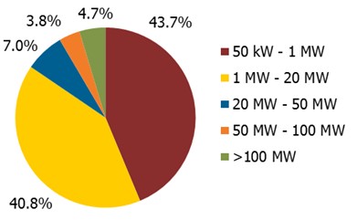 圖二、美國超過2,400個光伏電站規(guī)模分布情況(50KW及以上)