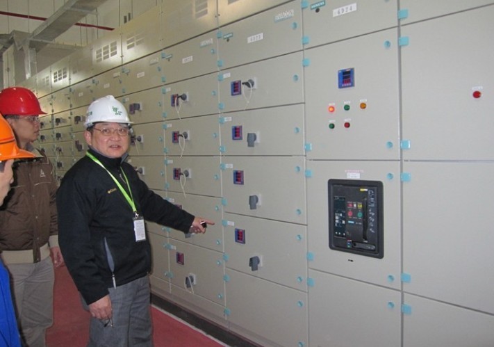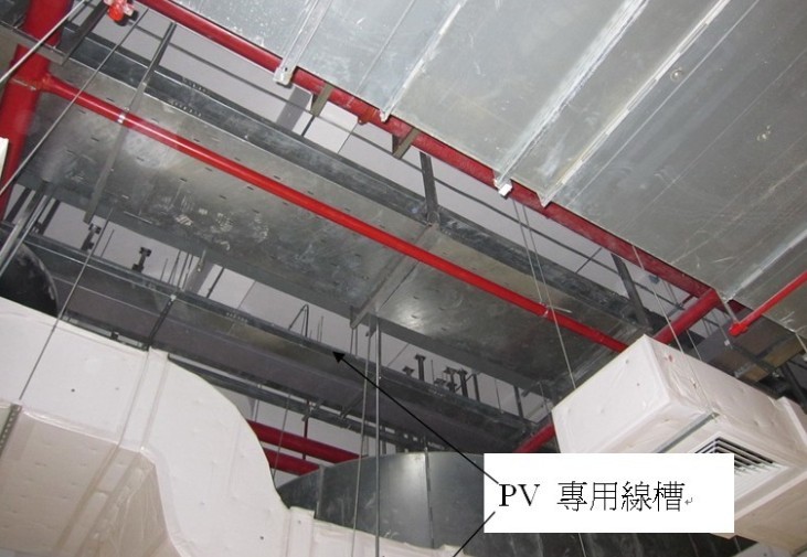 此光伏整個(gè)系統(tǒng)共享2750個(gè)雙玻光伏板塊,每一平方米板塊的發(fā)電量為90瓦。圖六顯示在地下室設(shè)置長(zhǎng)逾一公里的光伏專用線槽。圖七為此243KW的逆變器裝置,由于中國(guó)館的省市館用電浩繁,光伏板所產(chǎn)生的電力日間照明即可全部耗盡,不足或夜間所需者可由電網(wǎng)來補(bǔ)充。此即用「上網(wǎng)不并網(wǎng)」的方式來連接至電網(wǎng)系統(tǒng)。